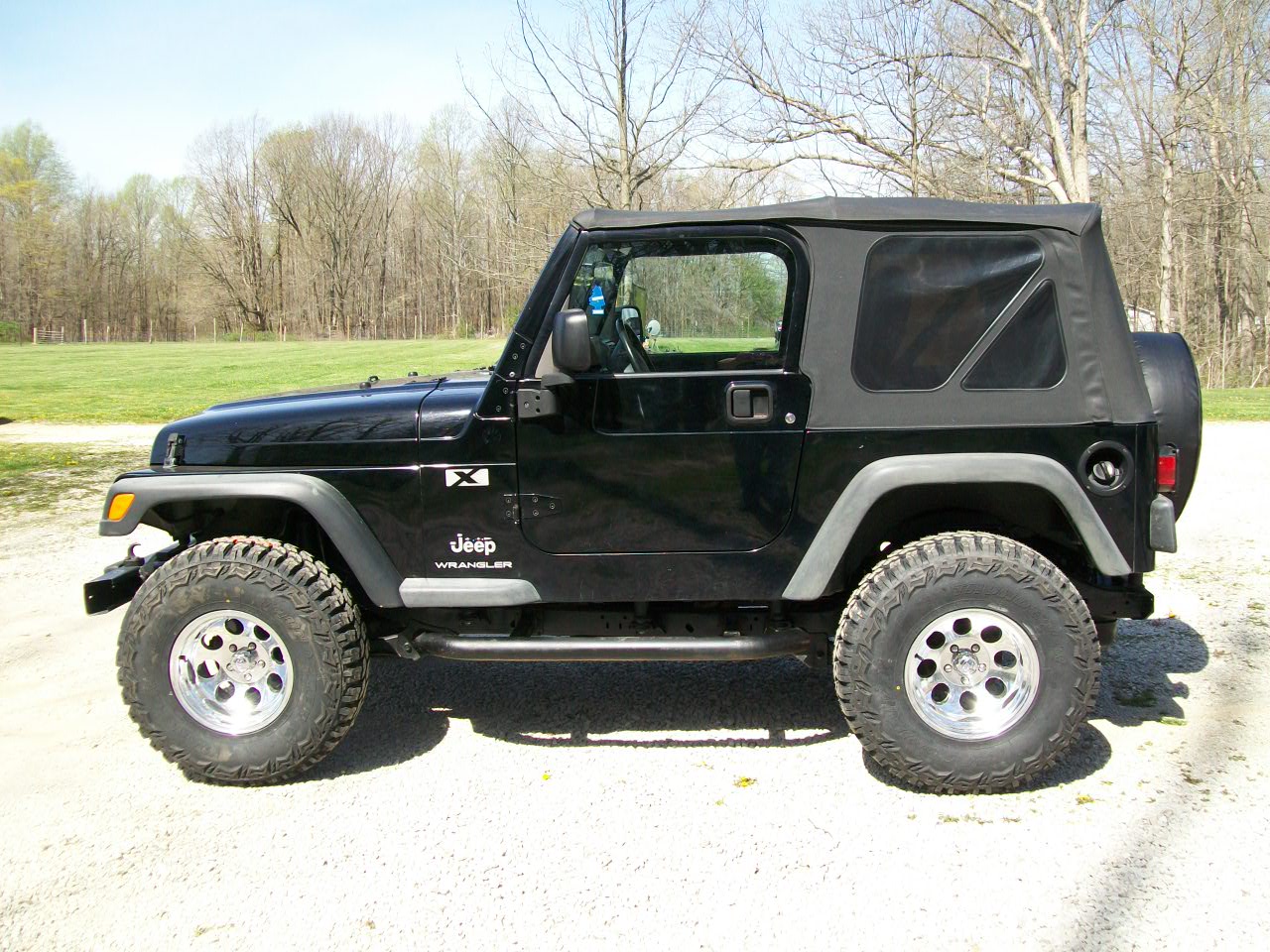 SOLD SOLD04 wrangler X-- 6 cyl 115K miles, 5 spd manual. solid body with no rust, frame is rust free also., new lift and new 33x12.50 tires and rims, very nice DK charchole interior